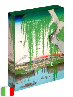 Nel 1855 un terribile terremoto devasta la città di Edo (poi ribattezzata Tokyo): nel decennio successivo Hiroshige (1797-1858) intraprende a disegnare i cento volti della città natale. Se da un lato registra i cambiamenti della città, dall’altro vi proietta i suoi sogni, pervasi di nostalgia. Il famoso paesaggista mostra con grande lirismo i siti più famosi e, talvolta, la loro recente ricostruzione, ma testimonia anche con estrema precisione la vita quotidiana degli abitanti e le loro usanze. Benché il formato dei paesaggi ukiyo-e sia per tradizione orizzontale, in questa raccolta – l’ultima pubblicata mentre era vivo – Hiroshige sceglie audacemente la verticalità, giocando con primi piani e inquadrature originali, con l’arte del grande maestro della stampa qual è. Riprodotta in fac-simile con rilegatura alla giapponese, l’opera è presentata in un elegante cofanetto che include un piccolo catalogo ragionato.
